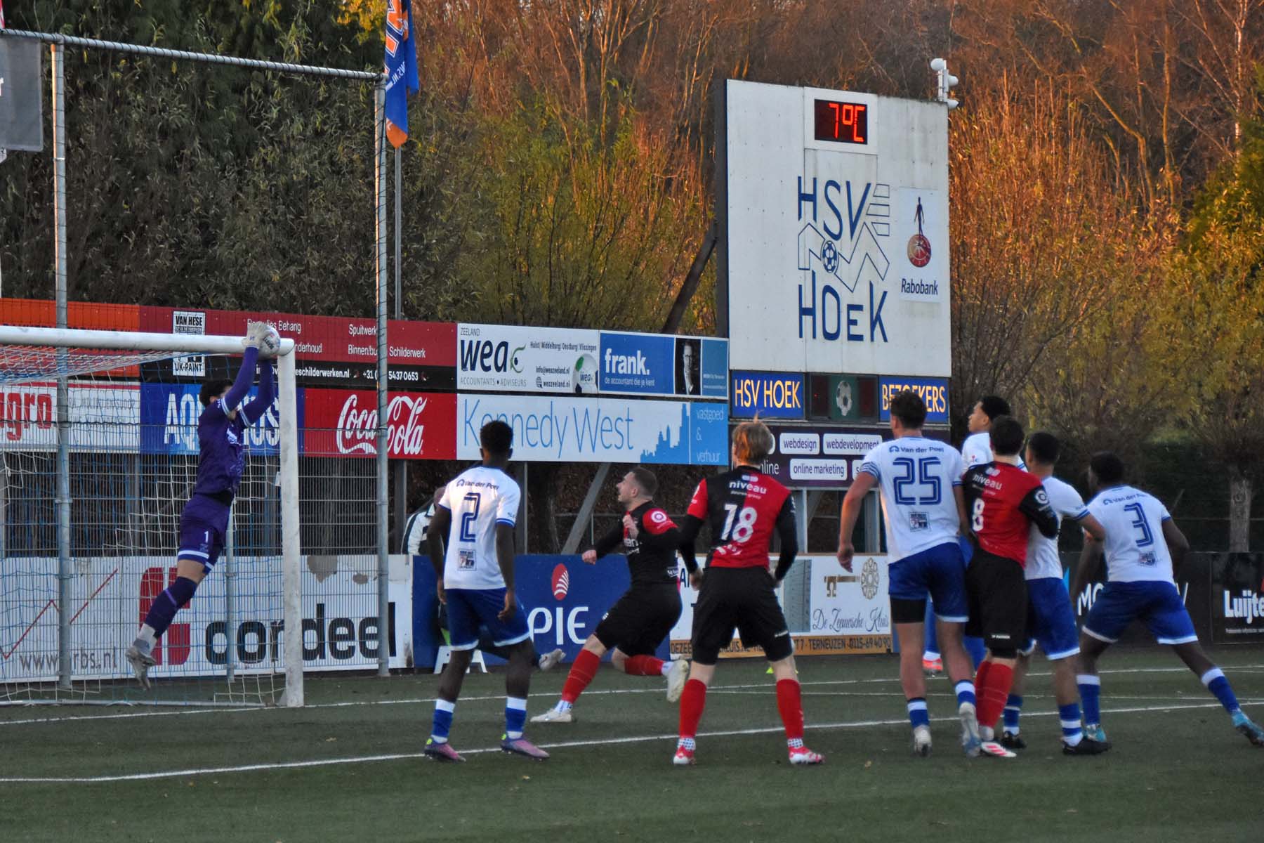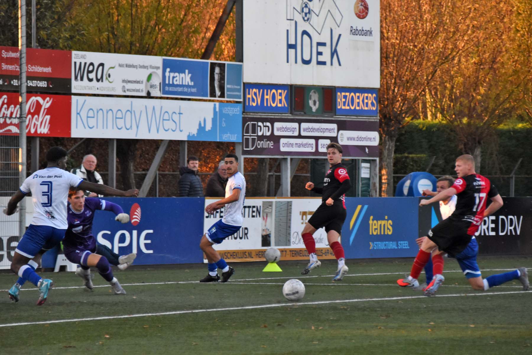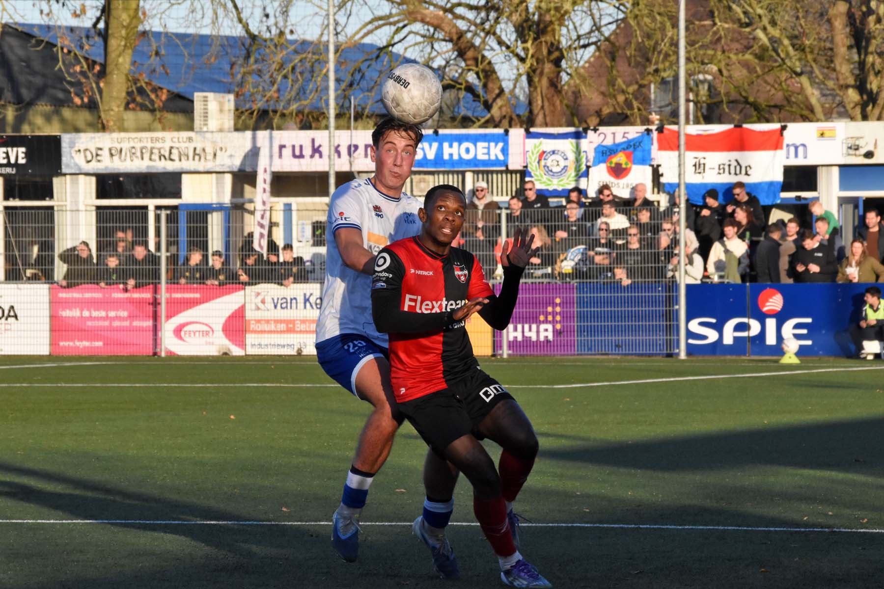 Hoek wint met 2-1 van De Treffers dankzij een late penalty van invaller Noah Aelterman en grijpt de koppositie in de Tweede Divisie, mede door puntenverlies van Quick Boys. Daarmee sluit de promovendus het jaar af als winterkampioen en kan het met vertrouwen richting bekerduel tegen Telstar.
