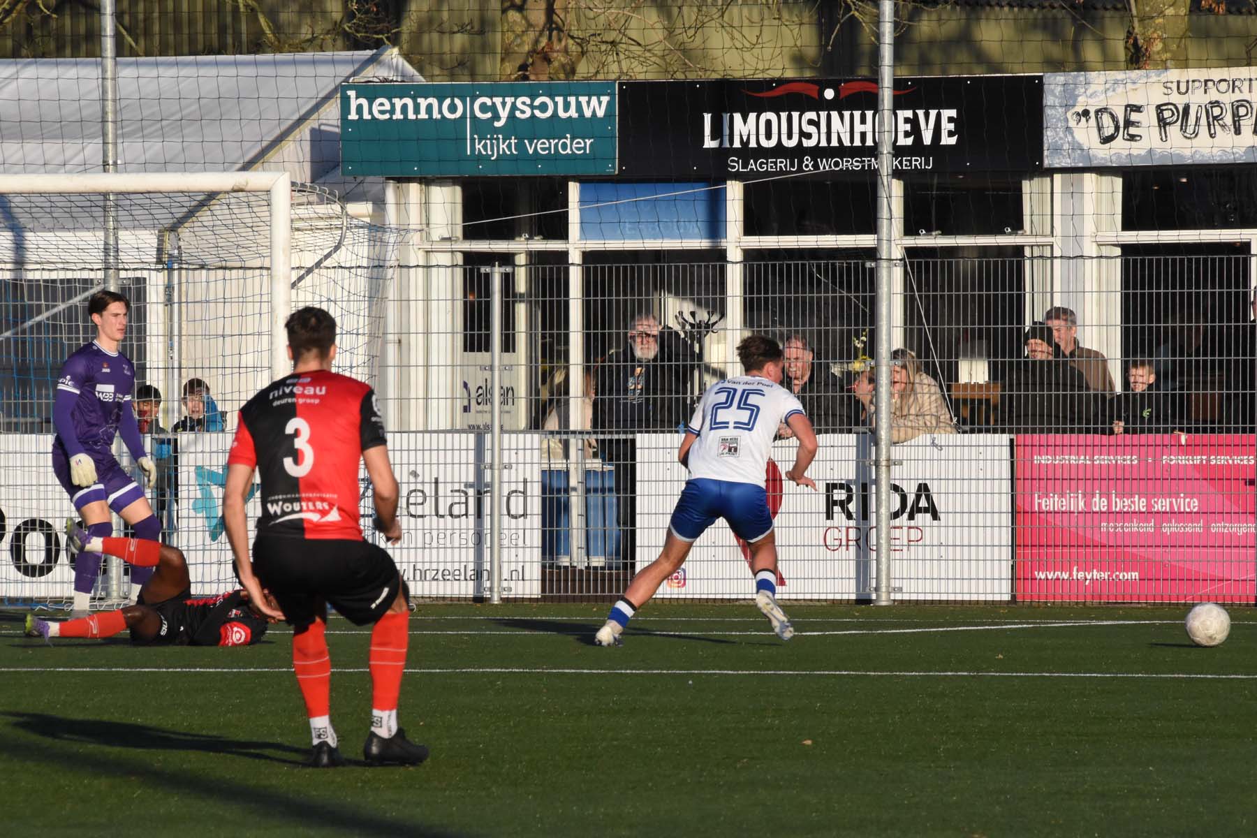 Na rust werd het duel rommeliger en minder spectaculair, al bleven beide ploegen loeren op de winst. De Treffers kreeg via Van Bakel opnieuw een uitgelezen kans, maar ook die liet hij liggen. De beslissing viel vijf minuten voor tijd, toen invaller Noah Aelterman onderuit werd gehaald in de zestien. Ditmaal wees Smeenk opnieuw naar de stip, en dit keer volkomen terecht. Aelterman nam zelf zijn verantwoordelijkheid en schoot via de handen van doelman Stoskovic de 2-1 binnen. In de slotfase probeerde De Treffers het nog wel, maar Hoek hield knap stand en pakte drie zwaarbevochten punten.