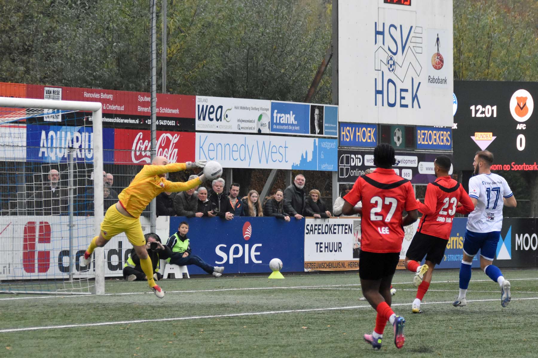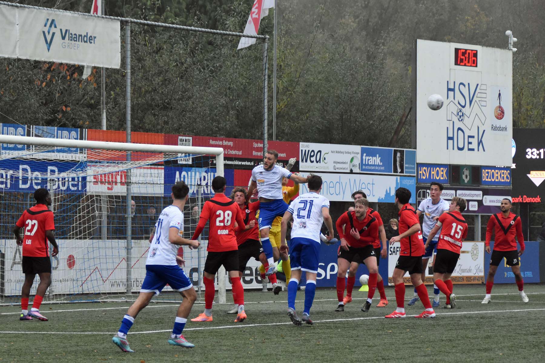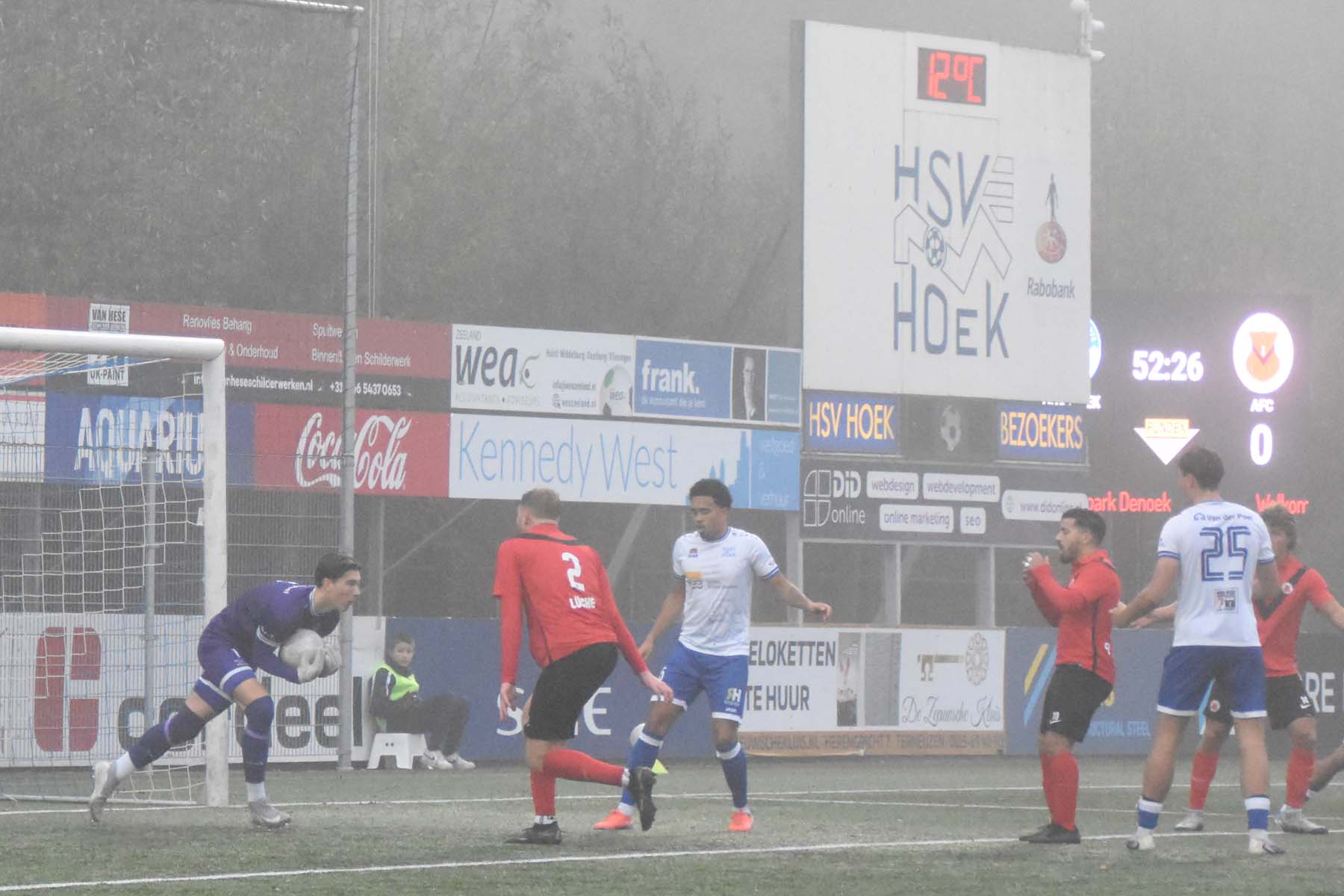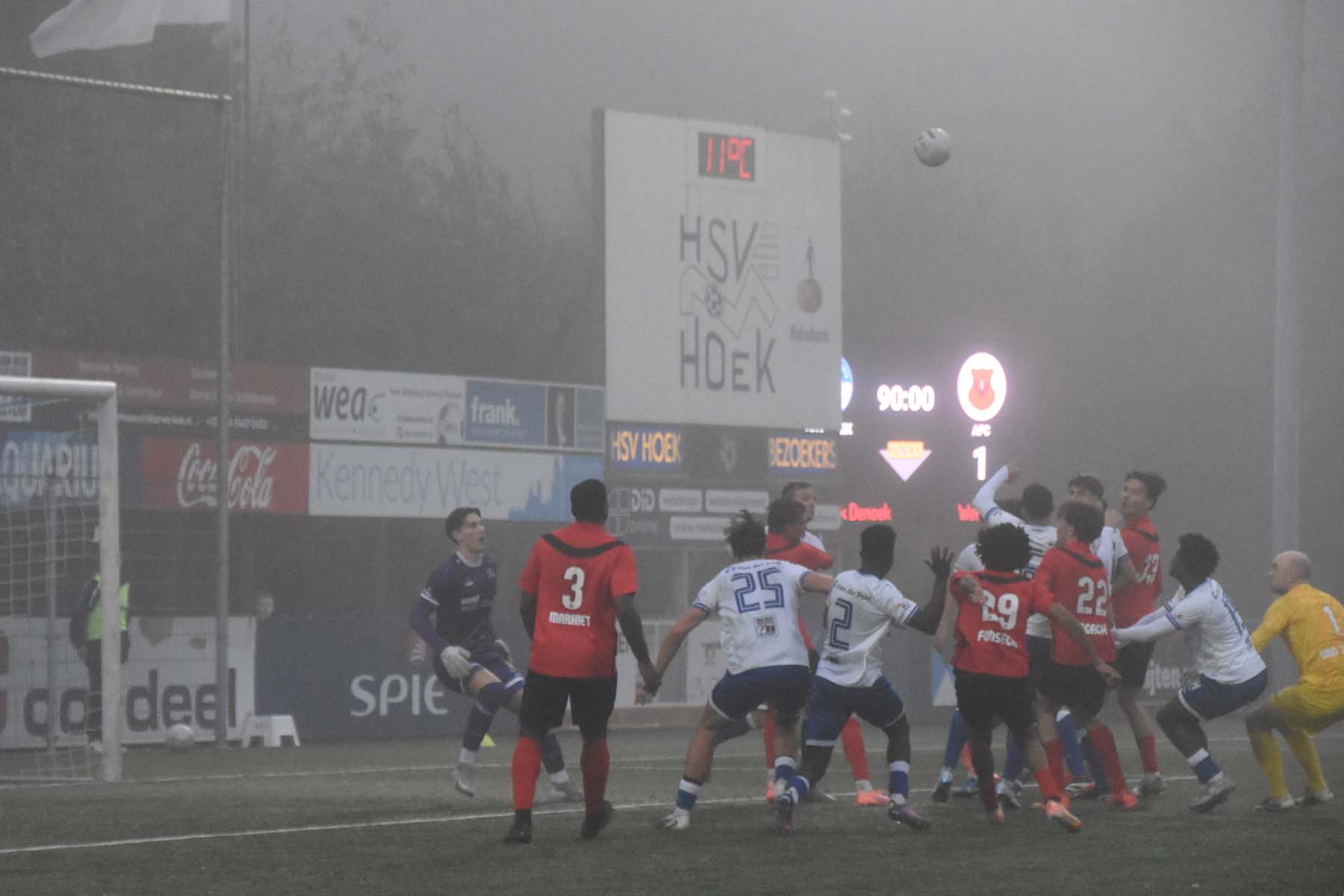 Hoek stond lang op een comfortabele 2-0 voorsprong tegen AFC, maar gaf in de blessuretijd alsnog de overwinning weg. Door het 2-2 gelijkspel blijft Hoek wel koploper, al was dit puntenverlies onnodig.