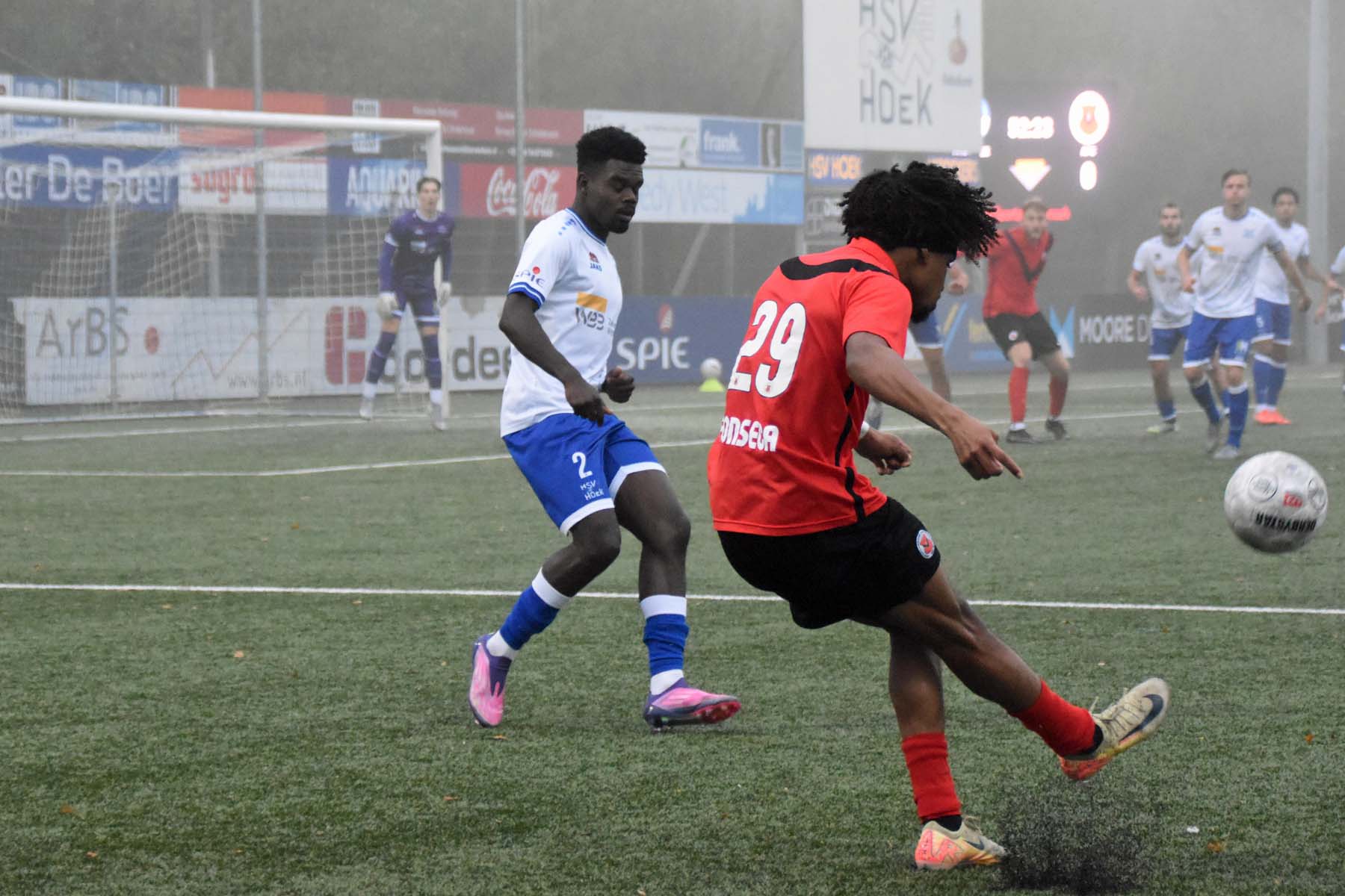 Op sportpark Denoek leek Hoek af te stevenen op een solide overwinning tegen AFC. De Zeeuwse koploper was in de eerste helft de betere ploeg, met spits Din Sula als het grootste gevaar. Ondanks dat hij het lastig had tegen de ervaren Ricardo van Rhijn, bleef Hoek aandringen. Pas vlak voor rust viel de verdiende 1-0. Na een vlotte combinatie tussen Bouirouchane en De Nooijer tikte Jarno Lion beheerst binnen. Na de pauze voerde Hoek de druk verder op. Hoewel het spel slordig bleef, kwam de 2-0 er toch: Steenpoorte hield een diepe bal knap binnen en Sula rondde zijn voorzet koel af. Op dat moment leek er geen vuiltje aan de lucht.