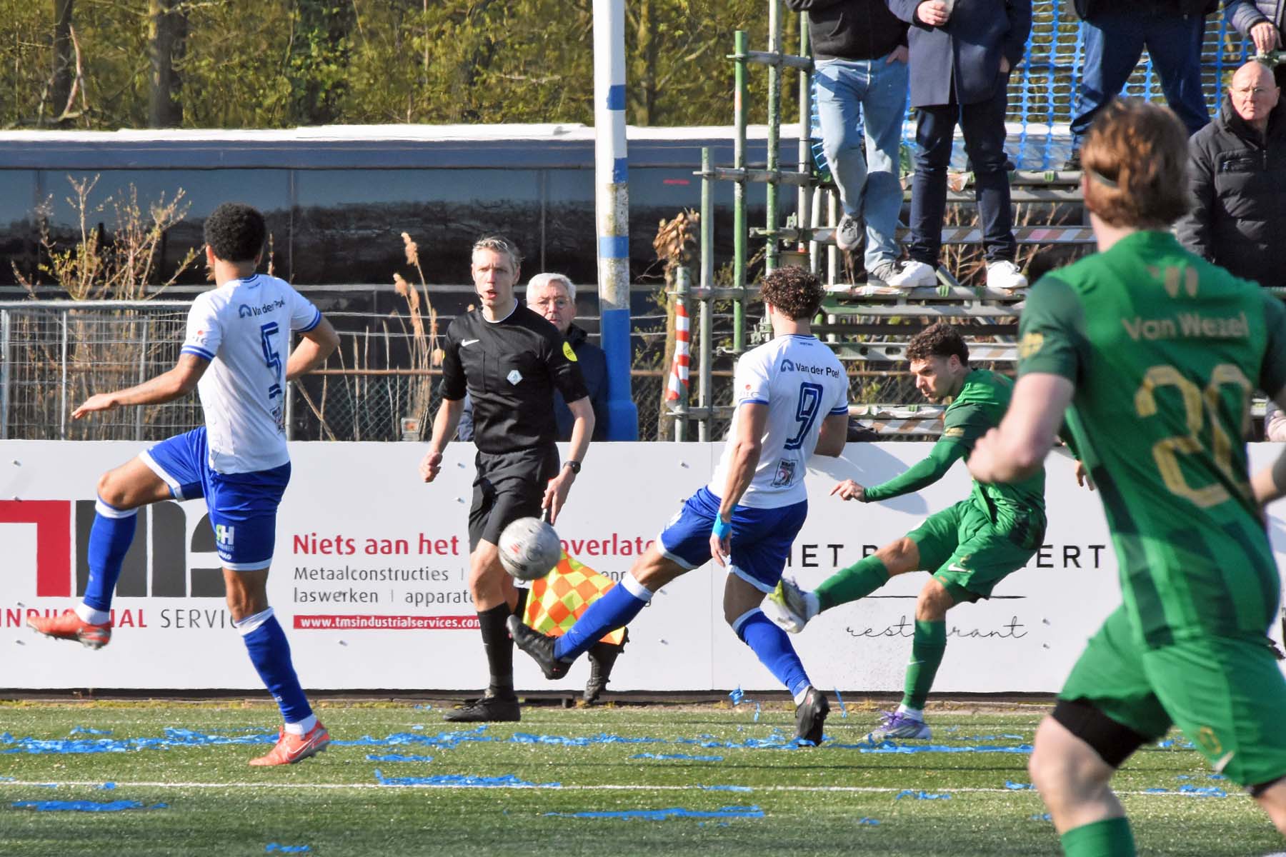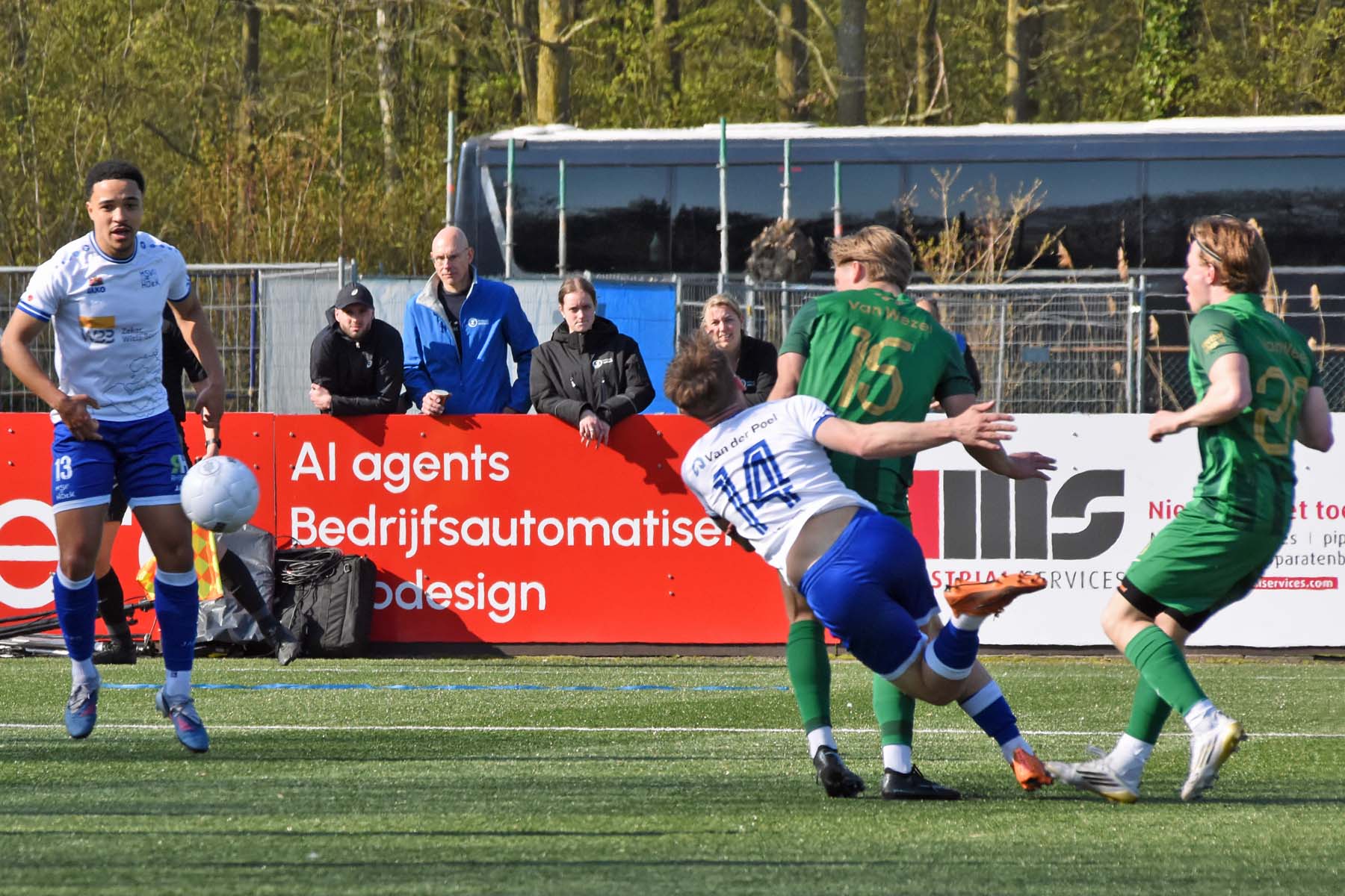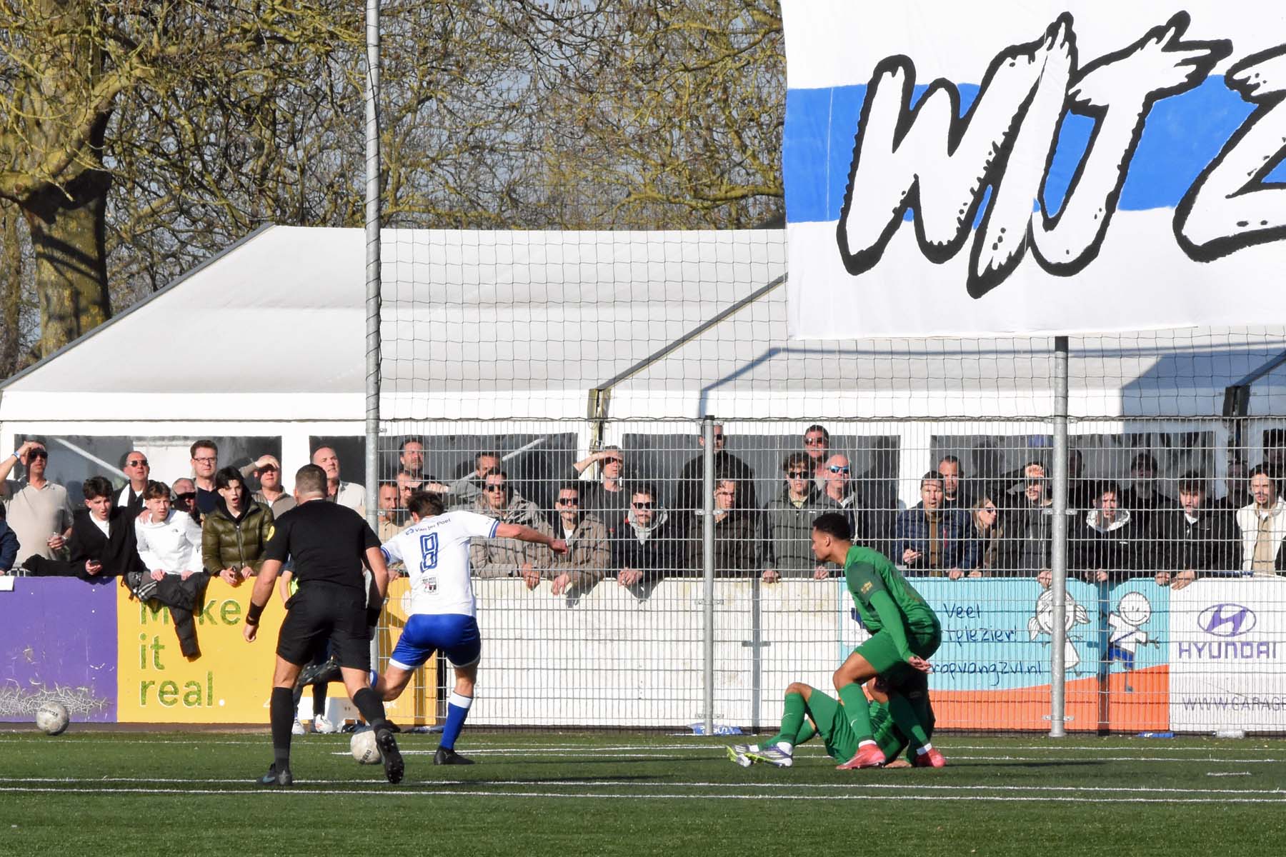 bij HSV Hoek denken ze aan een penalty de scheidsrechter zegt doorspelen.