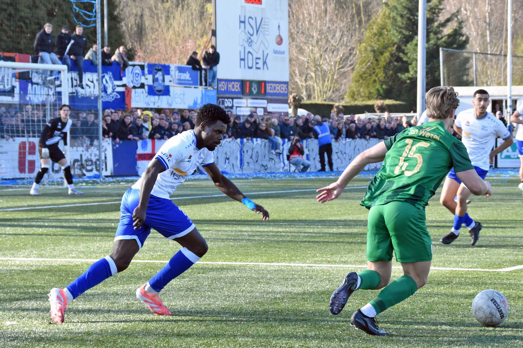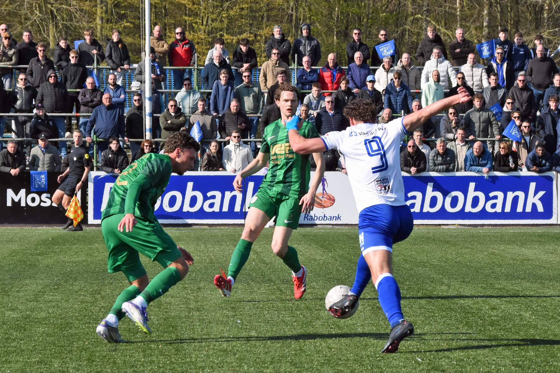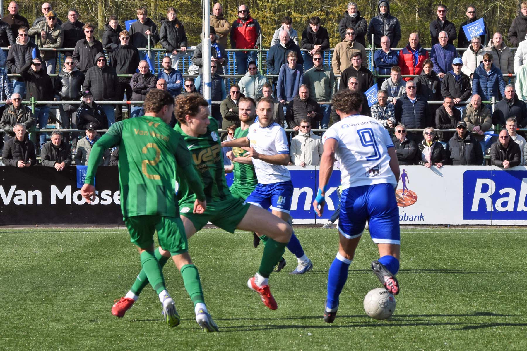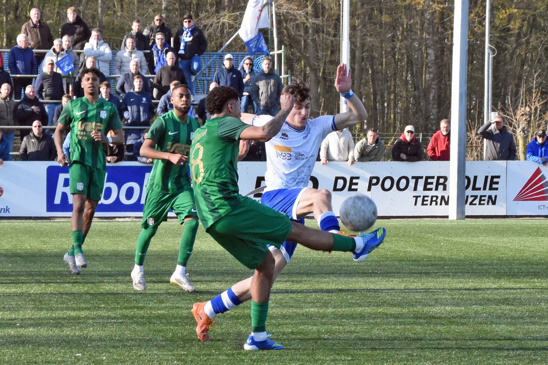 Counter voor HSV Hoek. Robbie van Hauter geeft de bal mee...