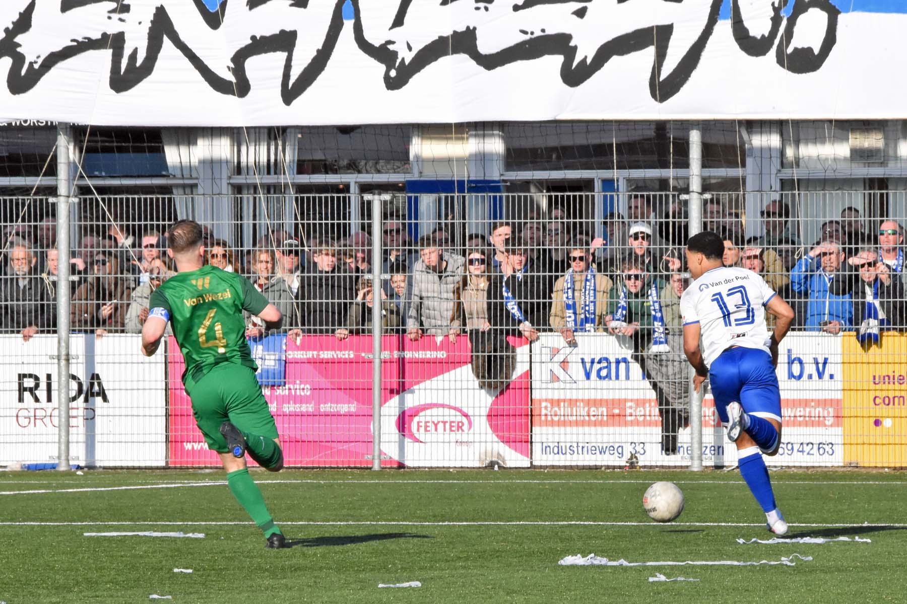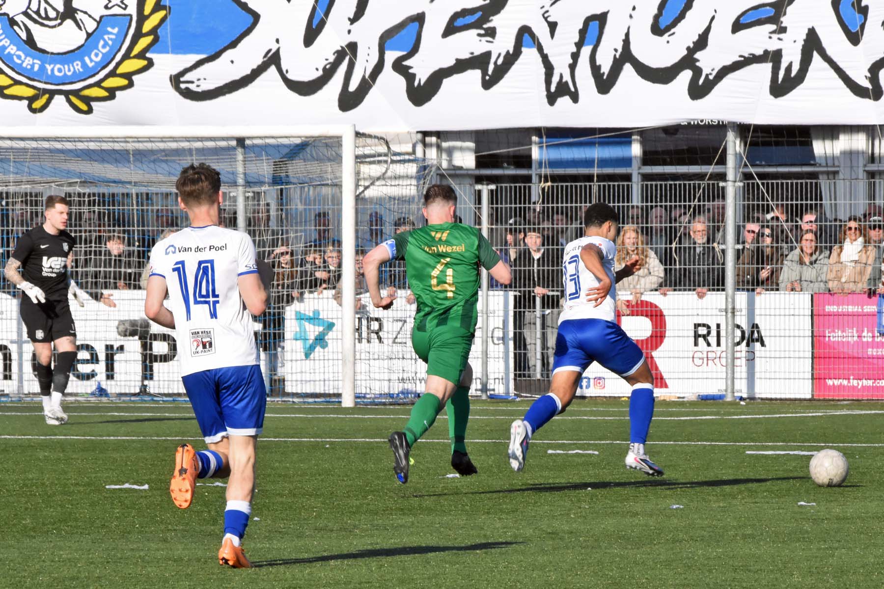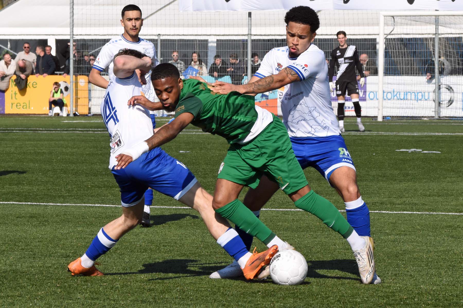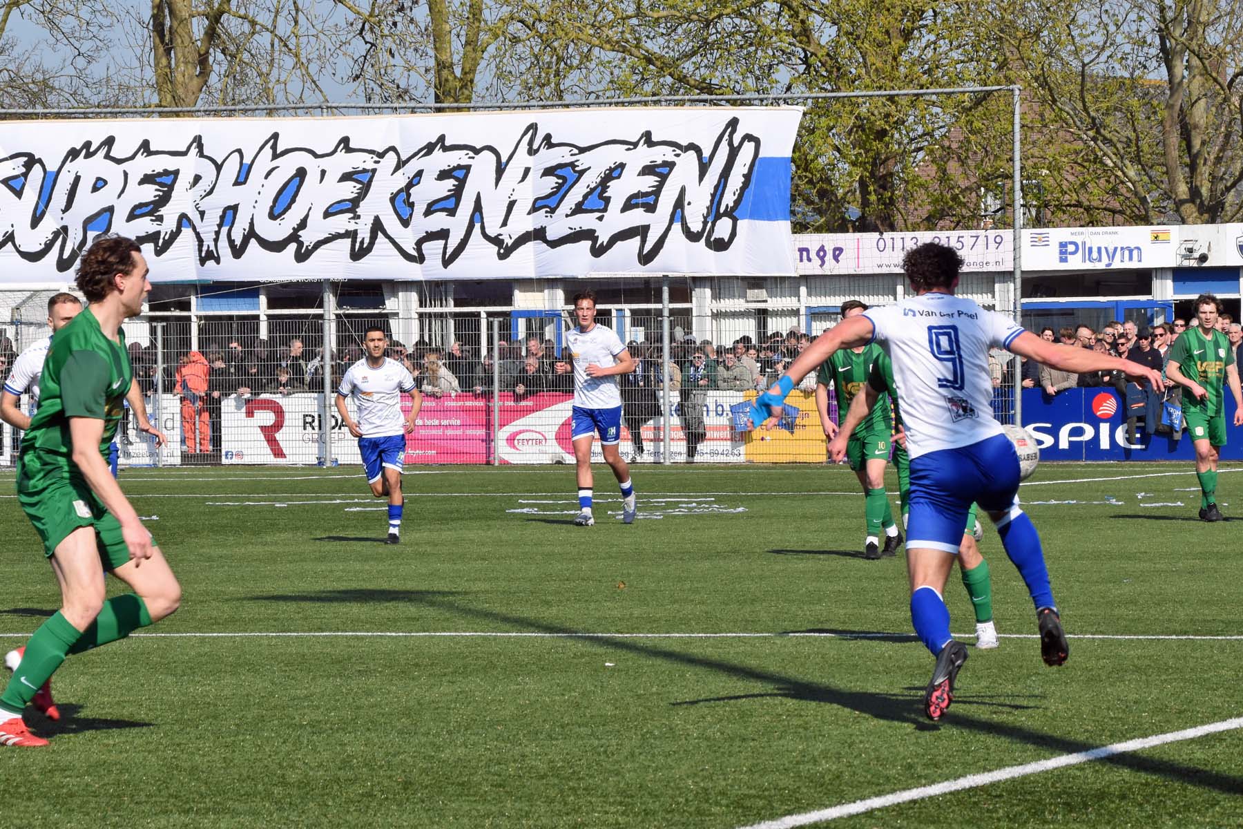 Counter voor HSV Hoek. Robbie van Hauter geeft de bal mee...
