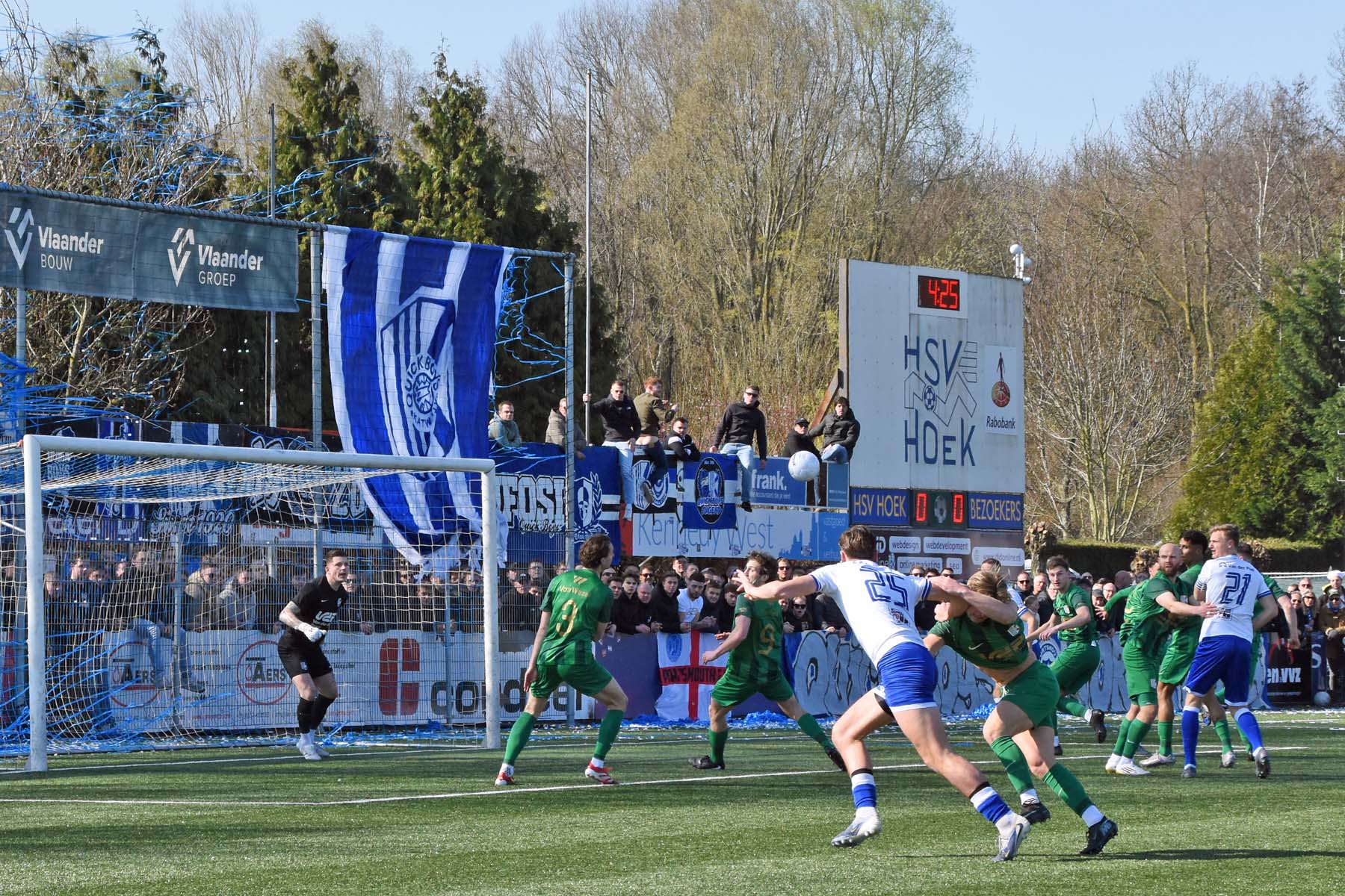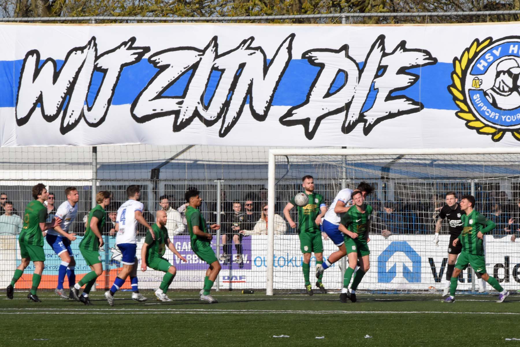 HSV Hoek heeft nog 20min om de overwinning in de wacht te slepen. Corner voor HSV Hoek. De bal gaat over Wout den Engelsman..
