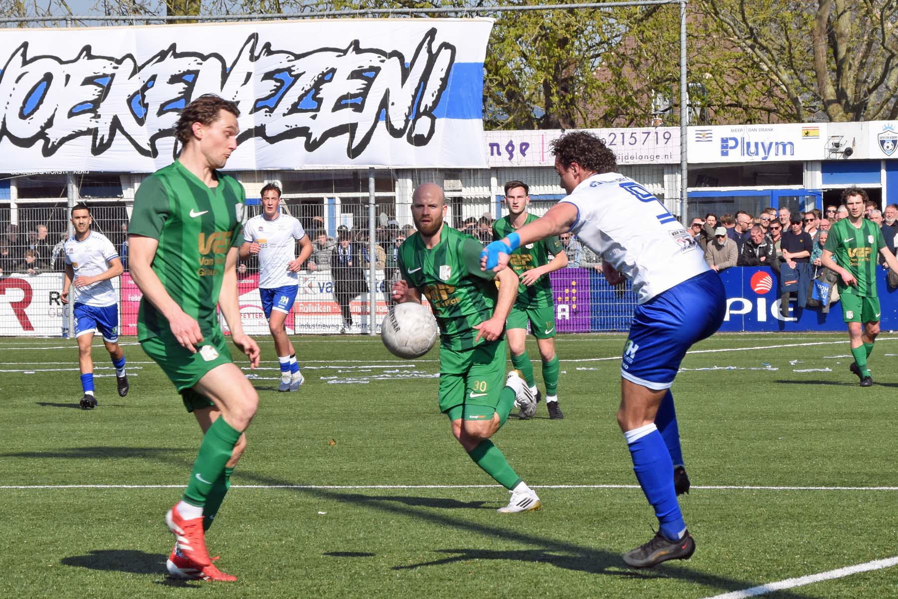 Corner voor HSV Hoek. Gertjan Martens, Sylvio Hage en Wout den Engelsman worden alle drie vastgehouden, moet kunnen toch?..