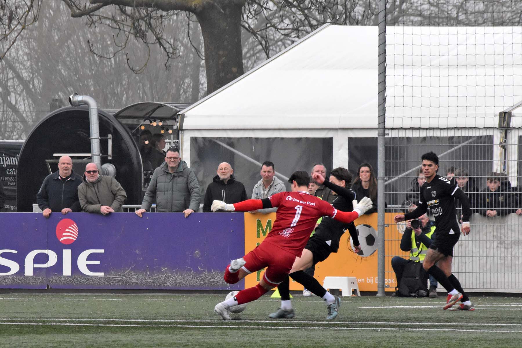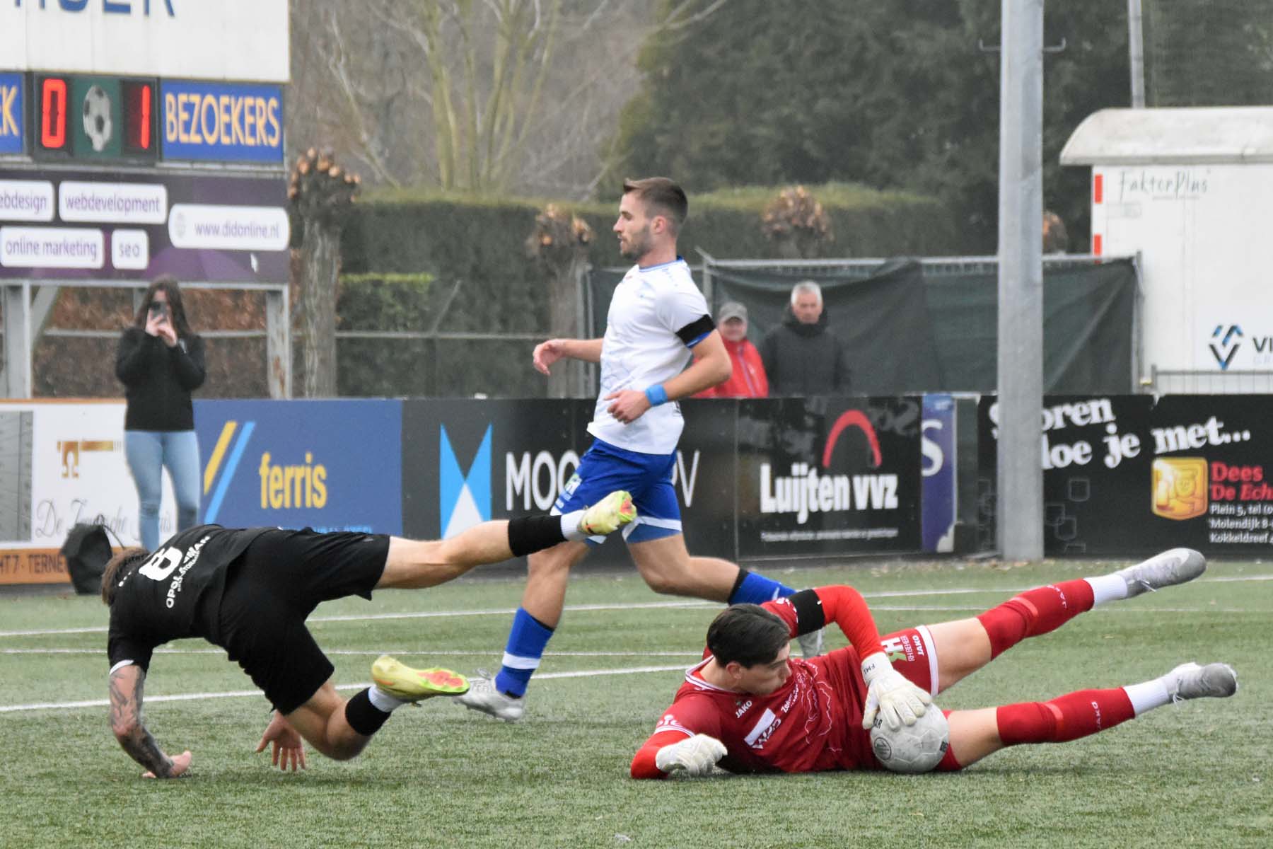 Uit het niets viel rond de twintigste minuut de 0-1. GVVV ontsnapte via een counter en Arwin van Soest dwong Finn Murre tot een knappe redding. Bij de daaropvolgende hoekschop ging het alsnog mis. Murre bokste de bal bij de eerste paal ongelukkig tegen Justin Spies aan, waarna de bal het doel in rolde.