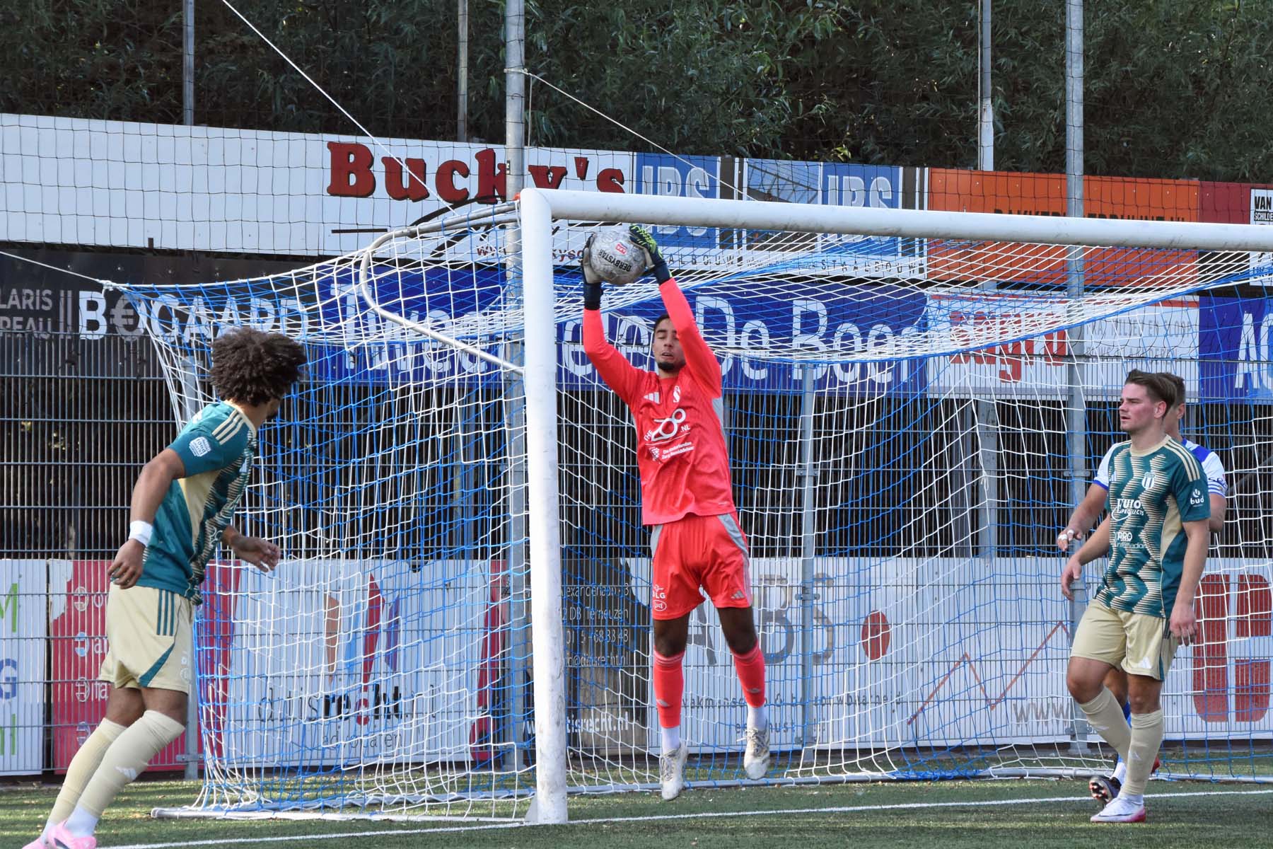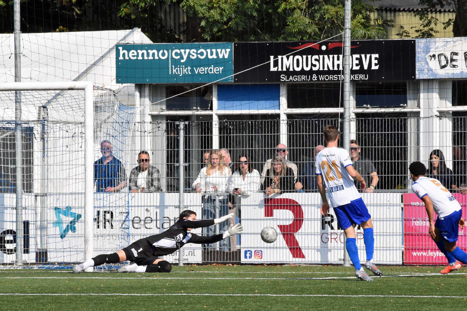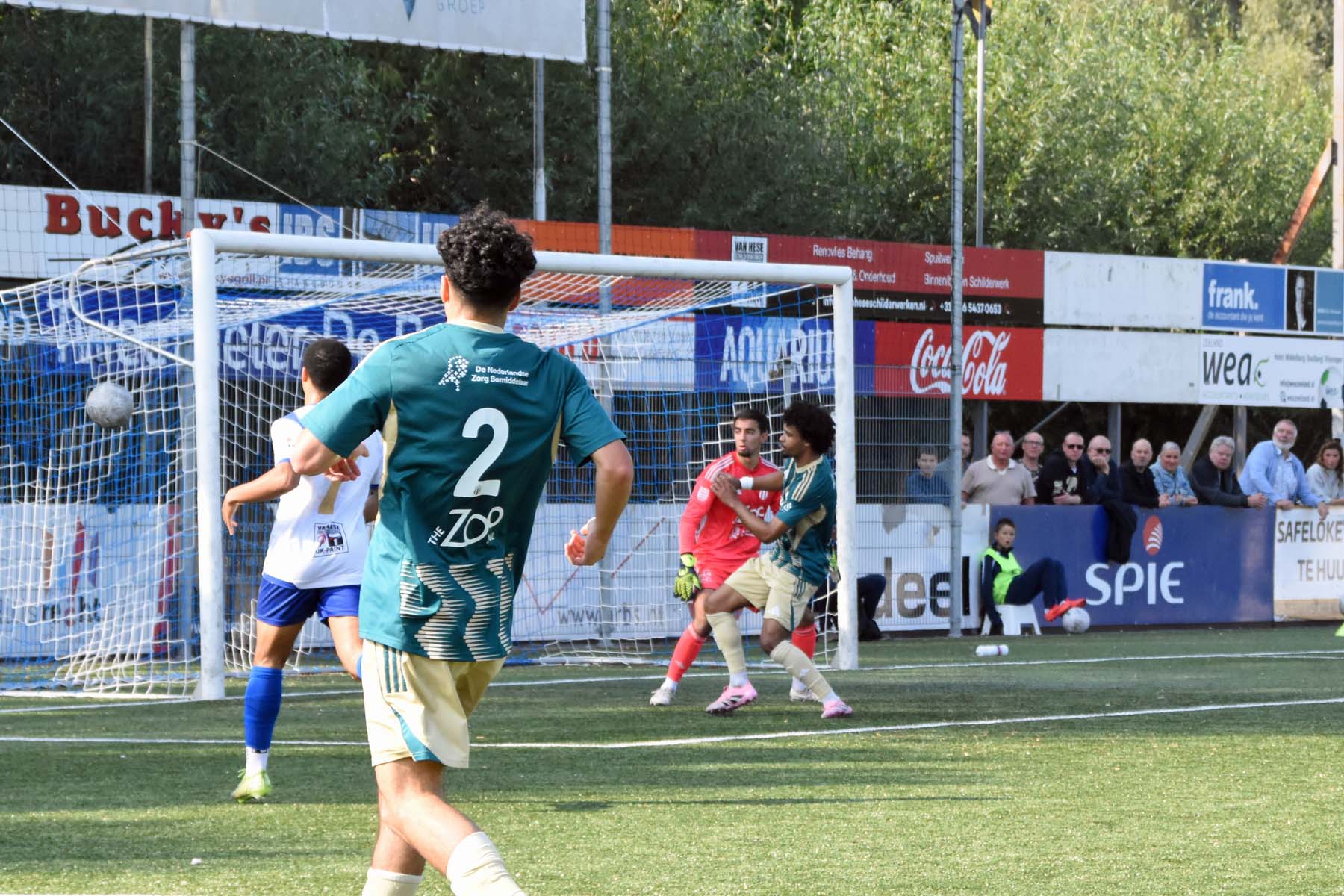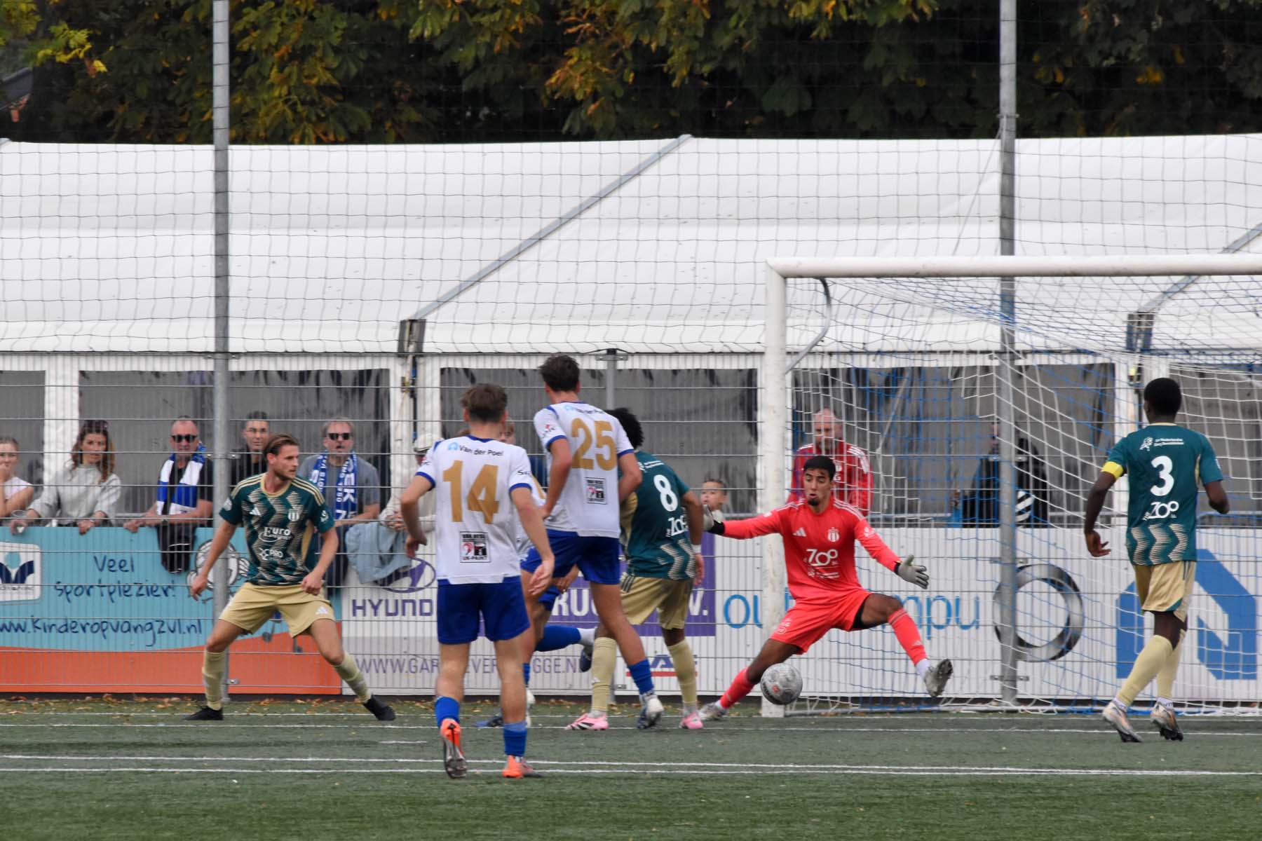 de keeper van Excelsior Maassluis heeft die bal alleenmaar gehoord..