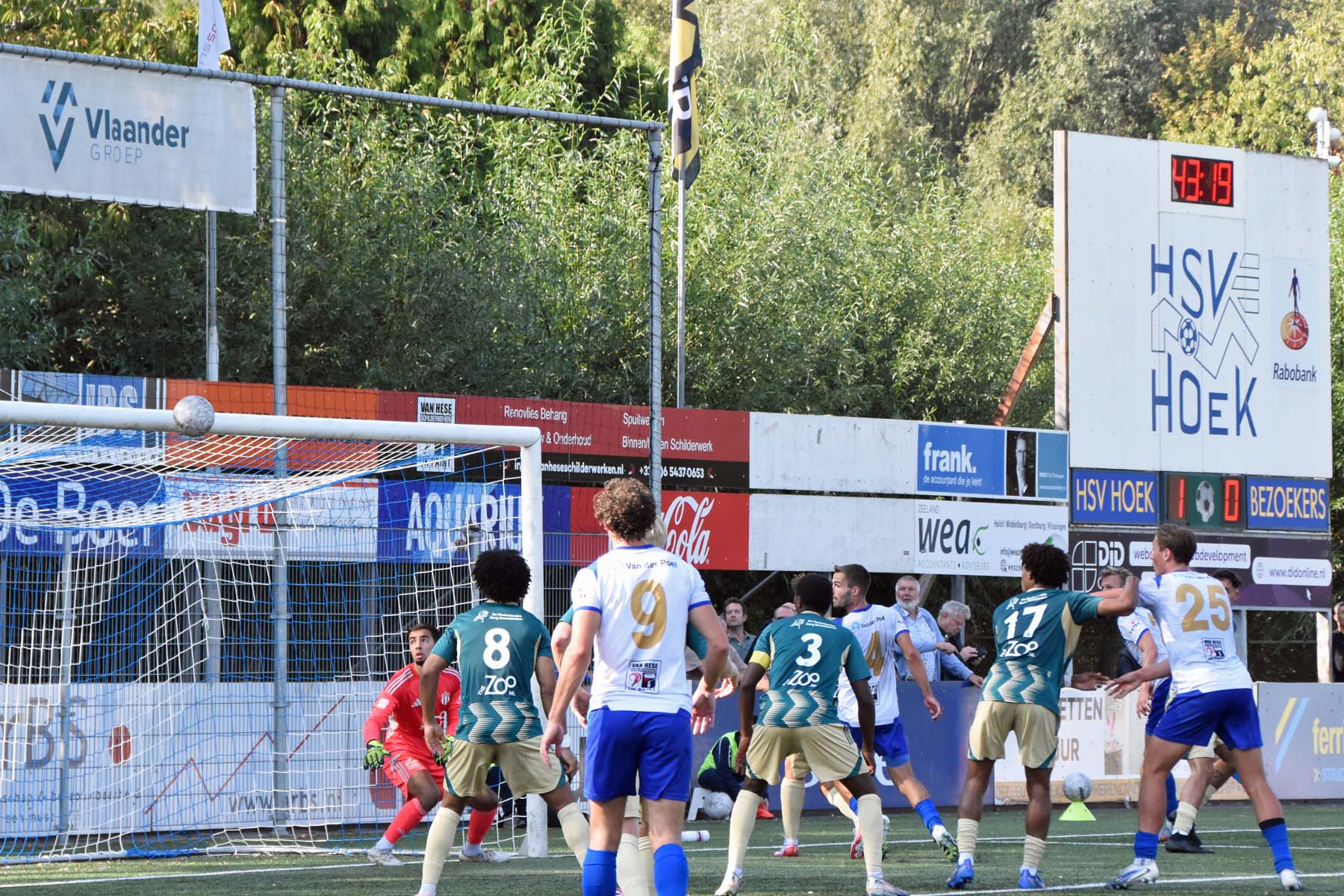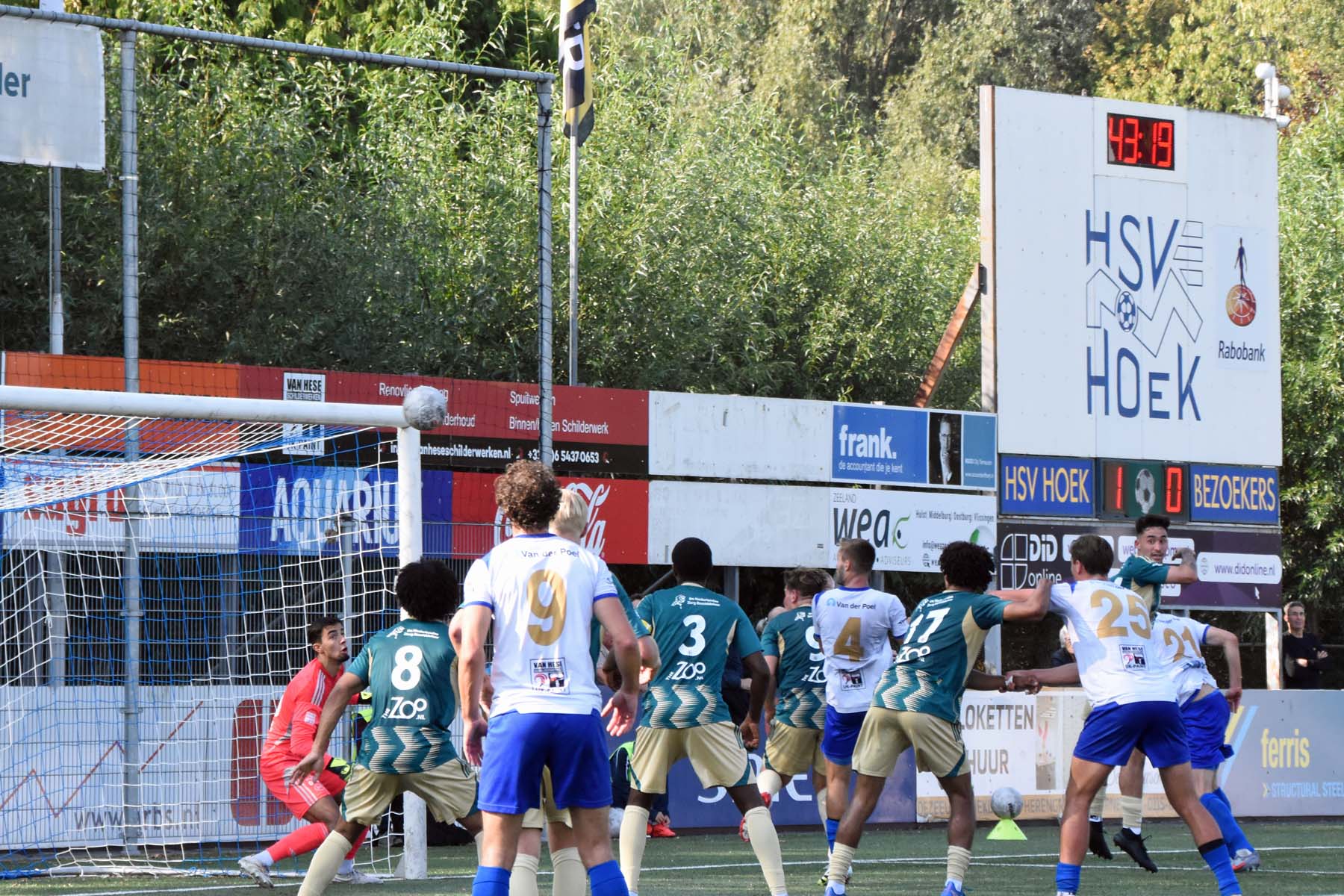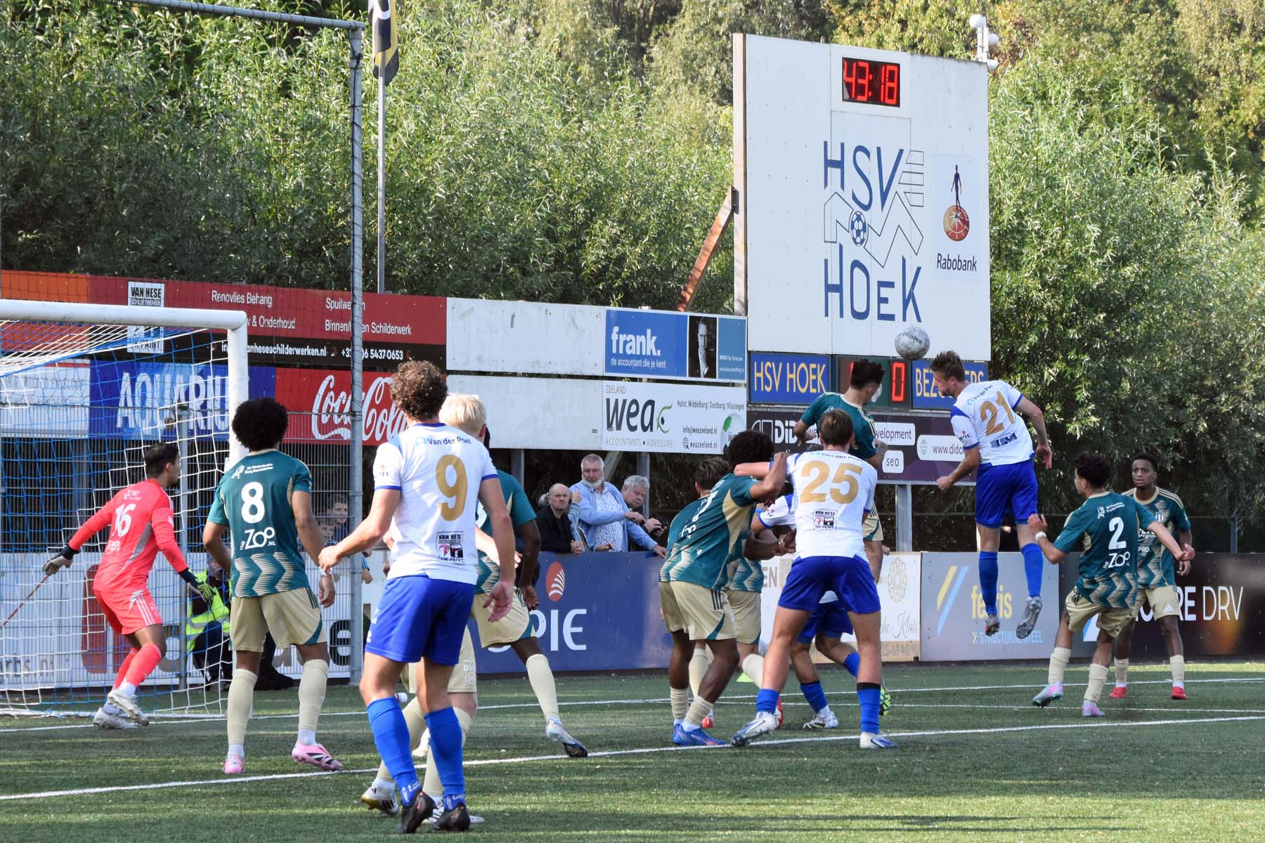 Corner voor HSV Hoek valt bij de tweede paal. Daar staat Sylvio Hage..