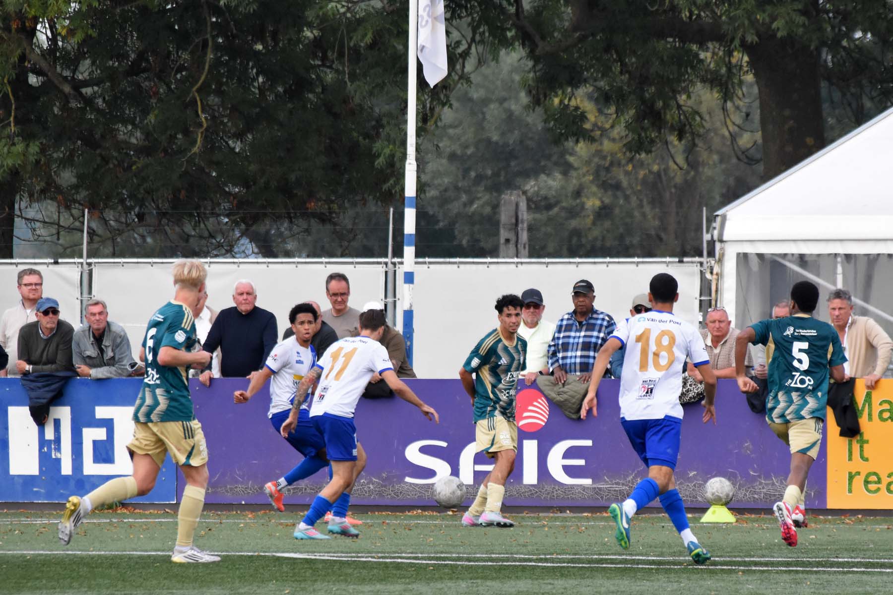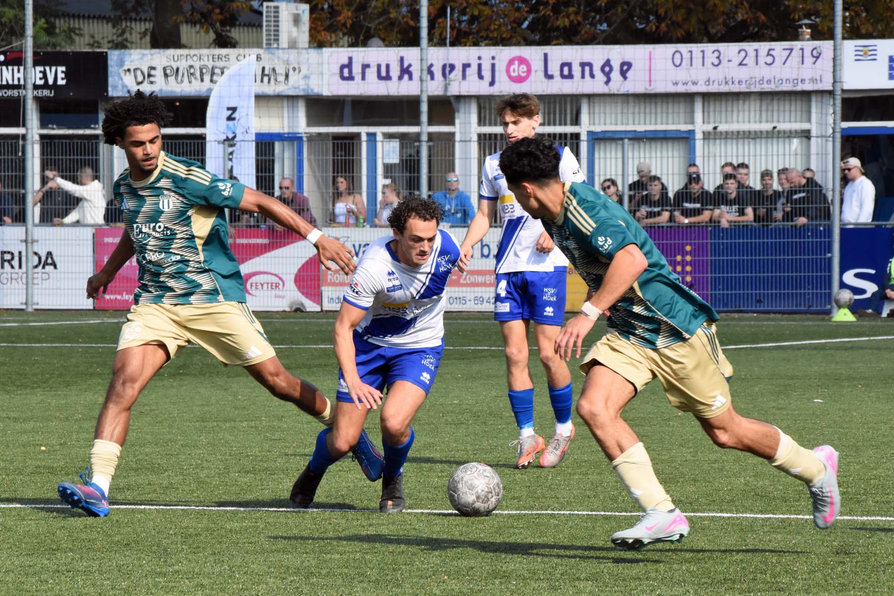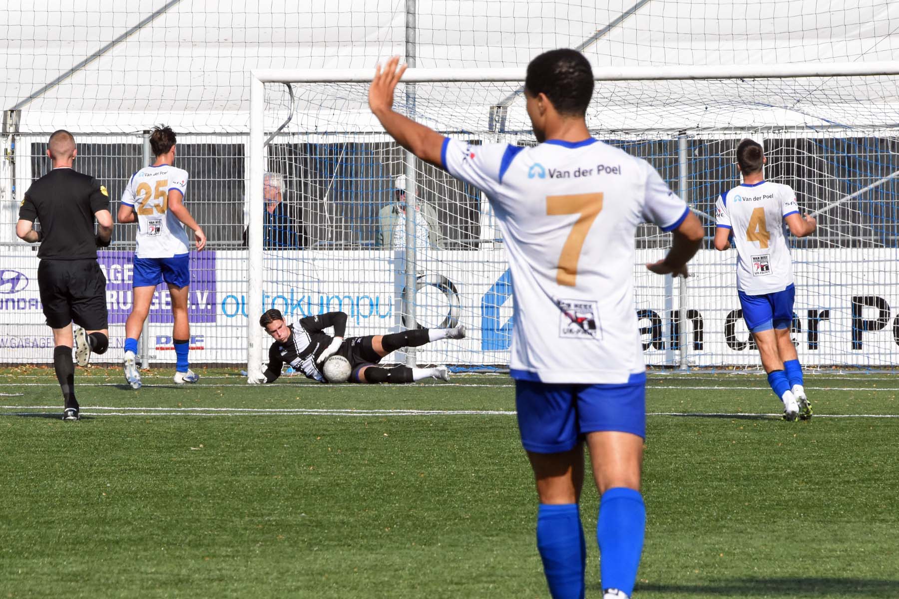Rousseau de Poorter onderbreekt de aanval van Excelsior Maassluis.