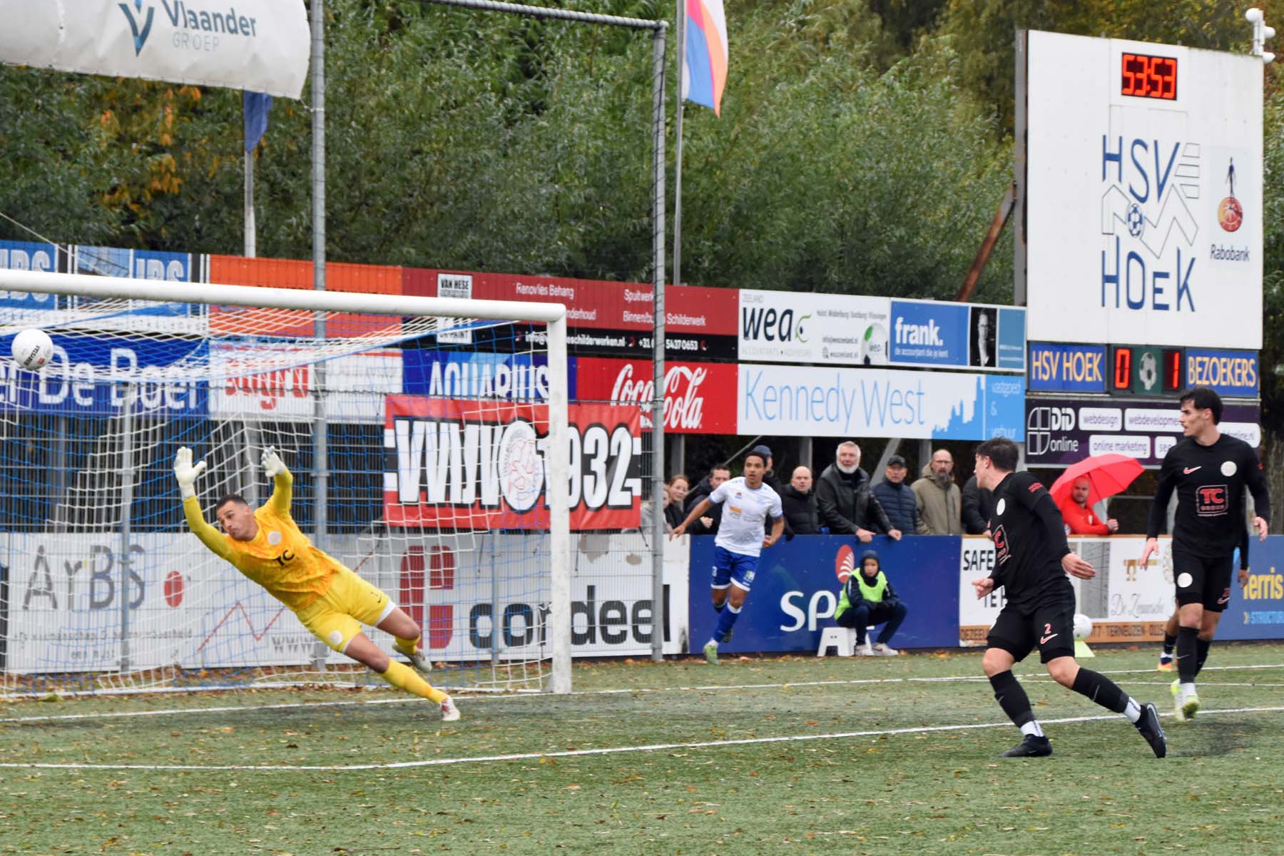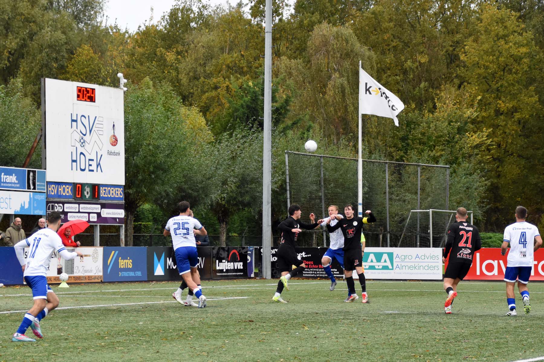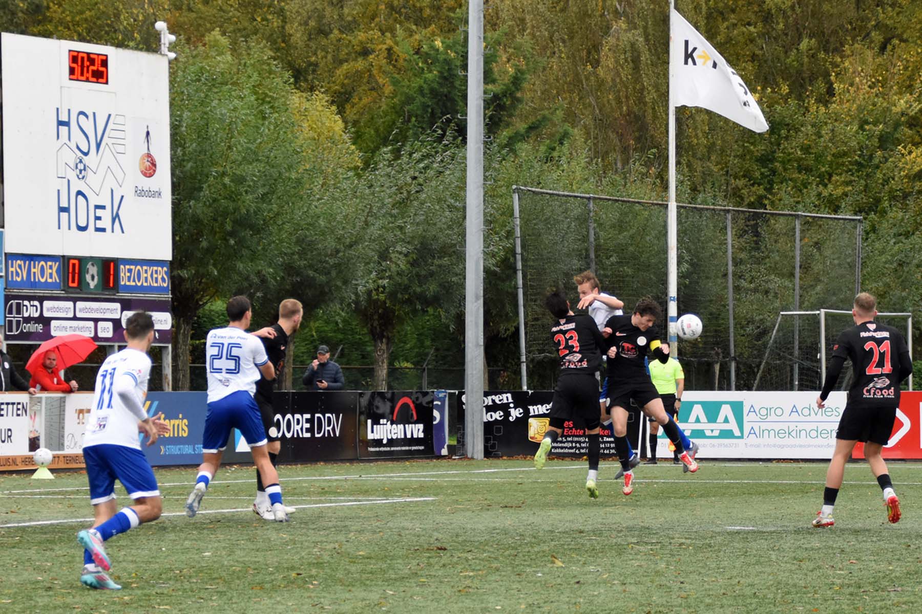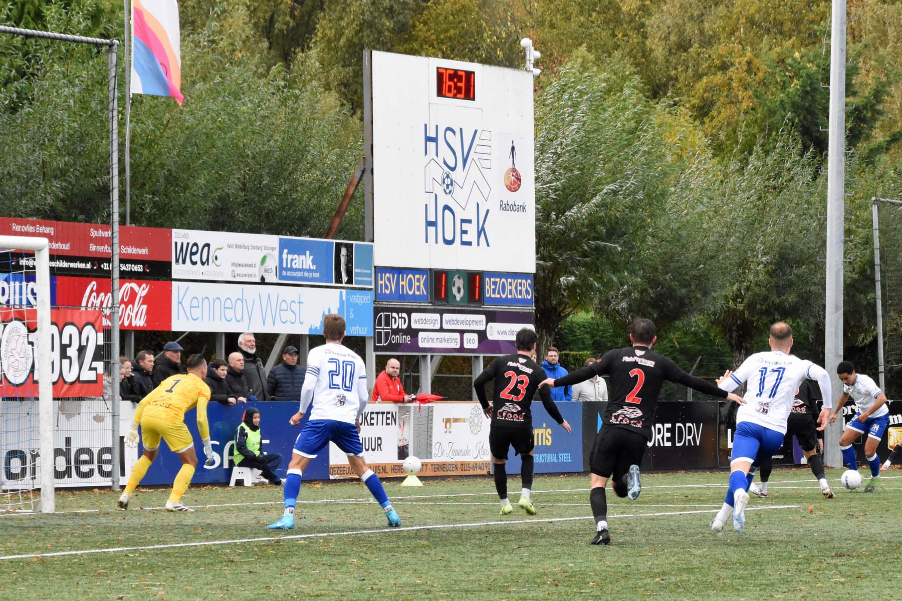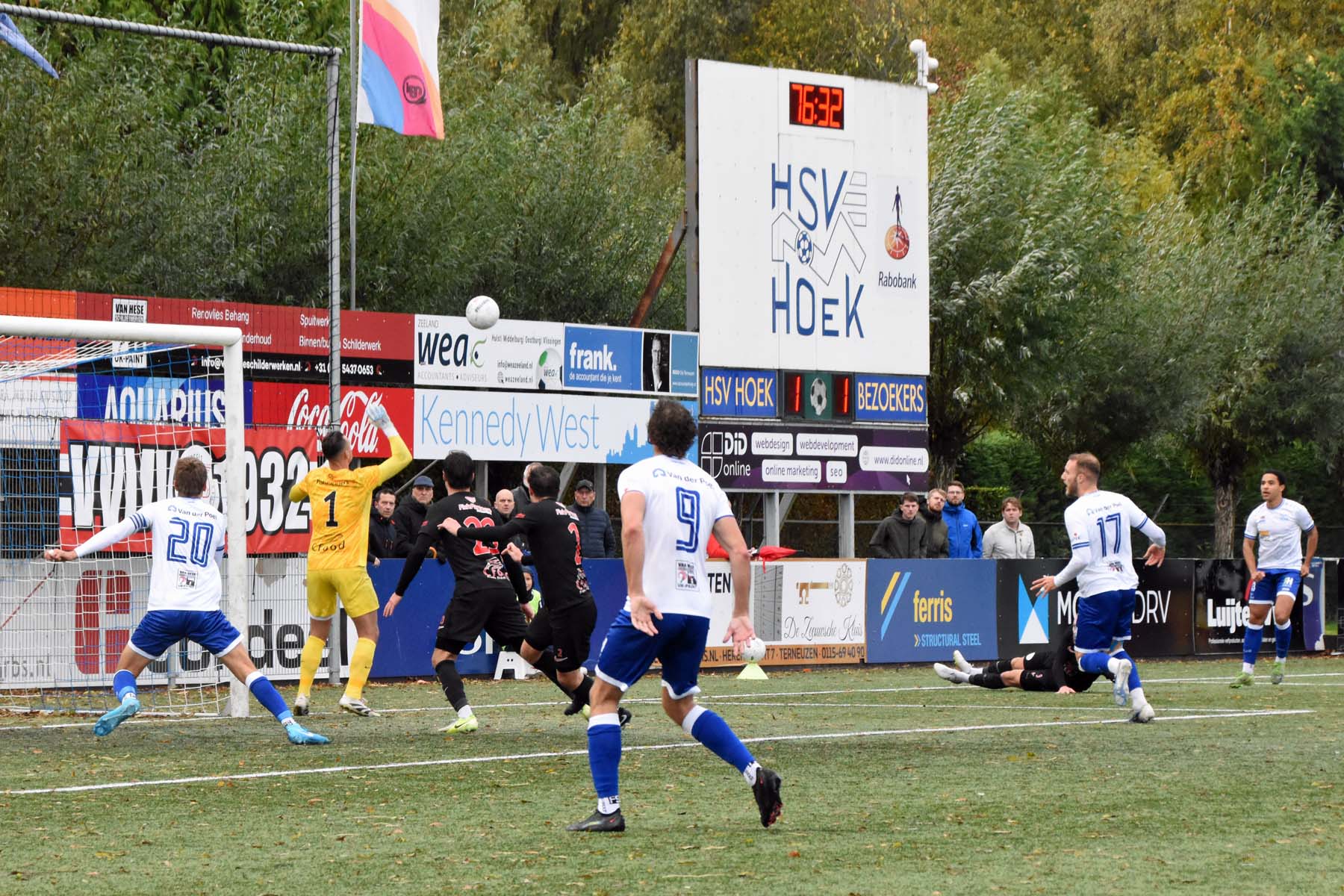 Op een winderig en nat sportpark Denoek boekte Hoek zaterdag een zwaarbevochten, maar verdiende 2-1 overwinning op IJsselmeervogels. Trainer Gérard de Nooijer had gekozen voor een onorthodox strijdplan zonder spits, met captain Steve Schalkwijk en de van een blessure teruggekeerde Din Sula op de bank. De Zeeuws-Vlamingen begonnen met Sylvio Hage en Noah Aelterman op de flanken, met de hoop dat het middenveld kon profiteren van de ruimte voorin. Hoewel Hoek het betere van het spel had en geregeld doorkwam via de zijkanten, leidde het gebrek aan bezetting in de zestien voor rust nauwelijks tot grote kansen. IJsselmeervogels loerde op fouten en sloeg halverwege de eerste helft toe: Max van Hees kopte vallend binnen na slordig verdedigen. Met een 0-1 achterstand ging Hoek rusten, gefrustreerd maar niet verslagen.